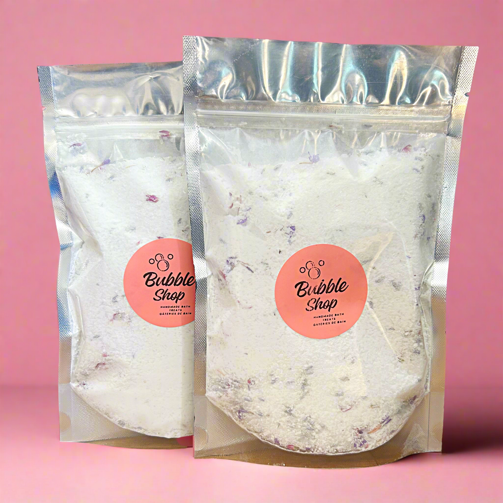Treat yourself to a peaceful moment of self-care with our Lavender 2-in-1 Bubble Bath and Epsom Salt Soak—your ultimate bath time luxury.