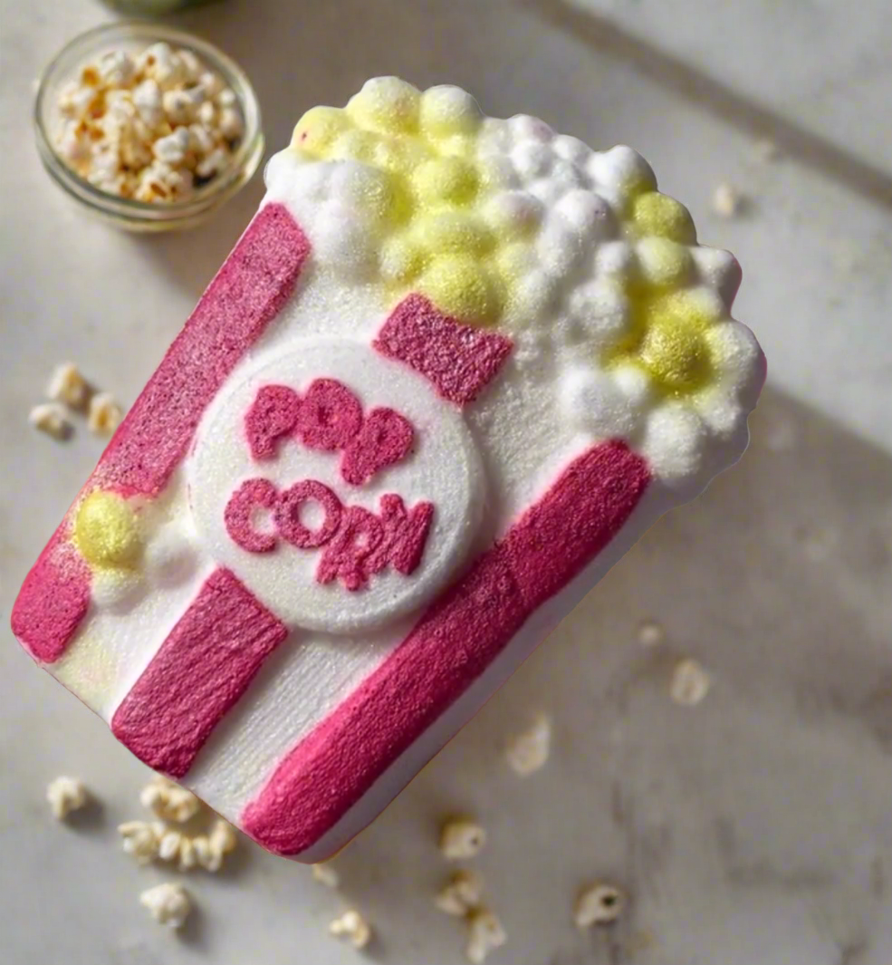Get ready for a bath-time blockbuster! Our Butter Popcorn Surprise Bath Bomb brings the nostalgic scent of buttery movie popcorn straight to your tub – without the mess!